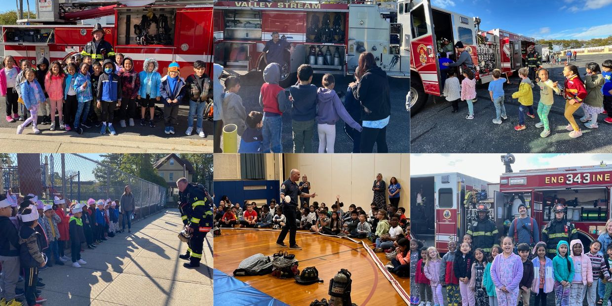 (OCTOBER 2022)—Valley Stream 24 Schools are celebrating National Fire Prevention Week with visits from firefighters of the Valley Stream Fire Department. This year marks the 100th anniversary of Fire Prevention Week, started in 1922 by National Fire Protection Agency