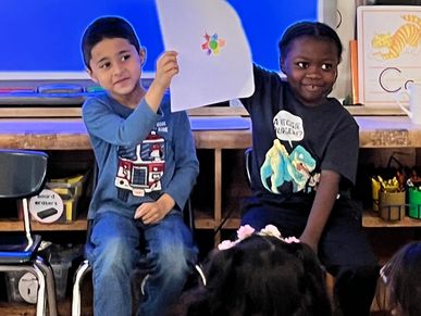 RWC kindergarten students listened to The Dot during class. The book is about a caring teacher who dares a doubting student to trust herself and her abilities by being brave enough to make her mark. What begins with a small dot on a piece of paper becomes a breakthrough in confidence and courage, igniting a journey of self-discovery and sharing, which has gone on to inspire countless children and adults around the globe. After, the kindergarten students used their creative minds and worked in groups to create and present something out of a dot.