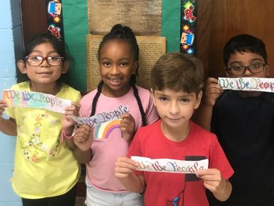 RWC second-grade students learned about the Constitution and the Bill of Rights. In discussing the Bill of Rights, the students learned about its importance in protecting our freedom of speech, religion, assembly, and due process of law. After, students created their own We The People sign and colored it in!